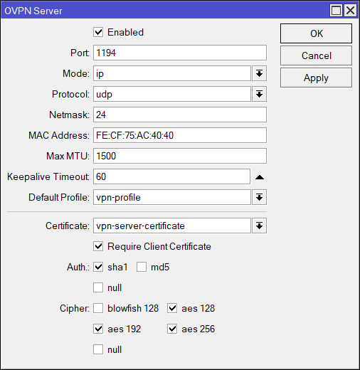 set default-profile=vpn-profile certificate=server-certificate require-client-certificate=yes \
