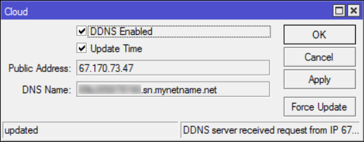 However, if you have your own domain, you can make it a bit more friendlier. Find where you can edit DNS entries at your registrar (Manage Domain with DreamHost) and add a new CNAME entry. For name you can put whatever you want and for value put Mikrotik’s DNS name (<serial>.sn.mynetname.net).