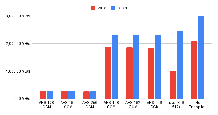 However, if you’re using AES-CCM, things are a bit confusing, at least on my test system. For writes, all is good. But when it comes to reads, gremlins seem to be hiding somewhere in the background.