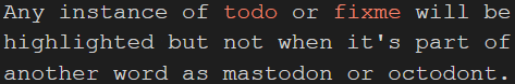 This extension will color any occurrences of TODO and FIXME (configurable) as errors when found in the text. Word will be highlighted only when found with non-letter character on each side.
