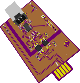 This PCB can be used in place of RMCARD205 in order to allow serial communication over USB for non-Windows operating systems.