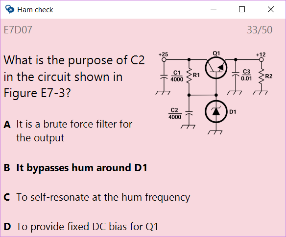 This program is just one of many programs helping prepare for the amateur radio exams. What differs it from the other similar programs is the support for keyboard-only operation, ability to zoom into the text, and showing the image next to text. While these might seem basic options, not many other exam applications support them.