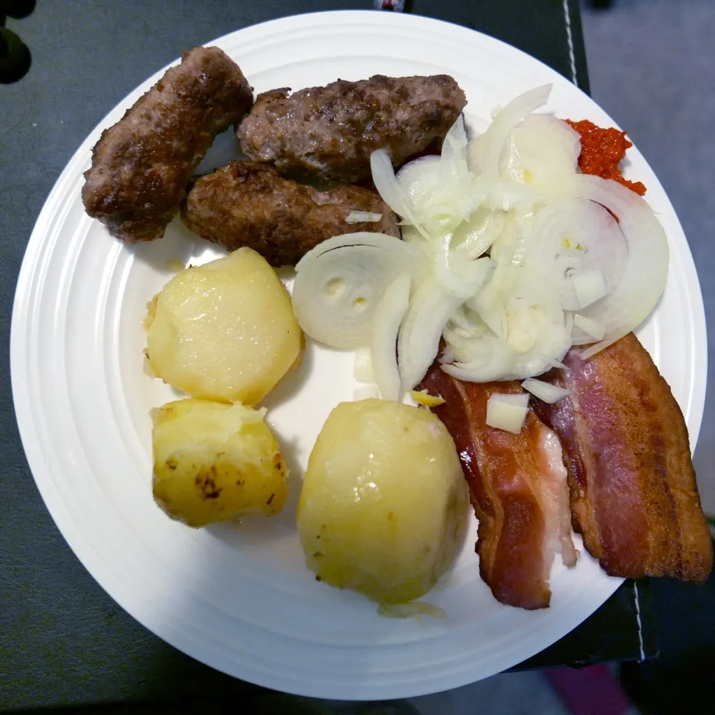 There are lot of side dishes you can serve but I do tend to like ajvar the best. Freshly chopped onions (thick rings) does work but don’t kiss anybody after. Some people like sour cream but I’ll skip that.