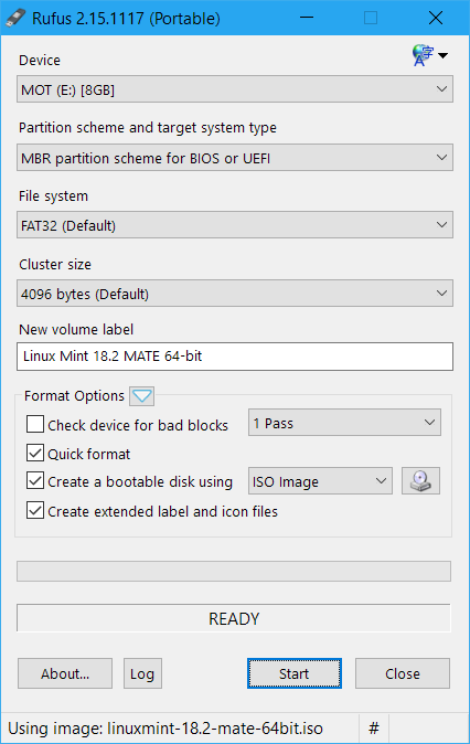 Assuming you already downloaded Linux ISO file, you will also need to download PORTABLE version of Rufus. Yes, you could also install it but we are looking into the least intrusive way so portable reflect that philosophy better.