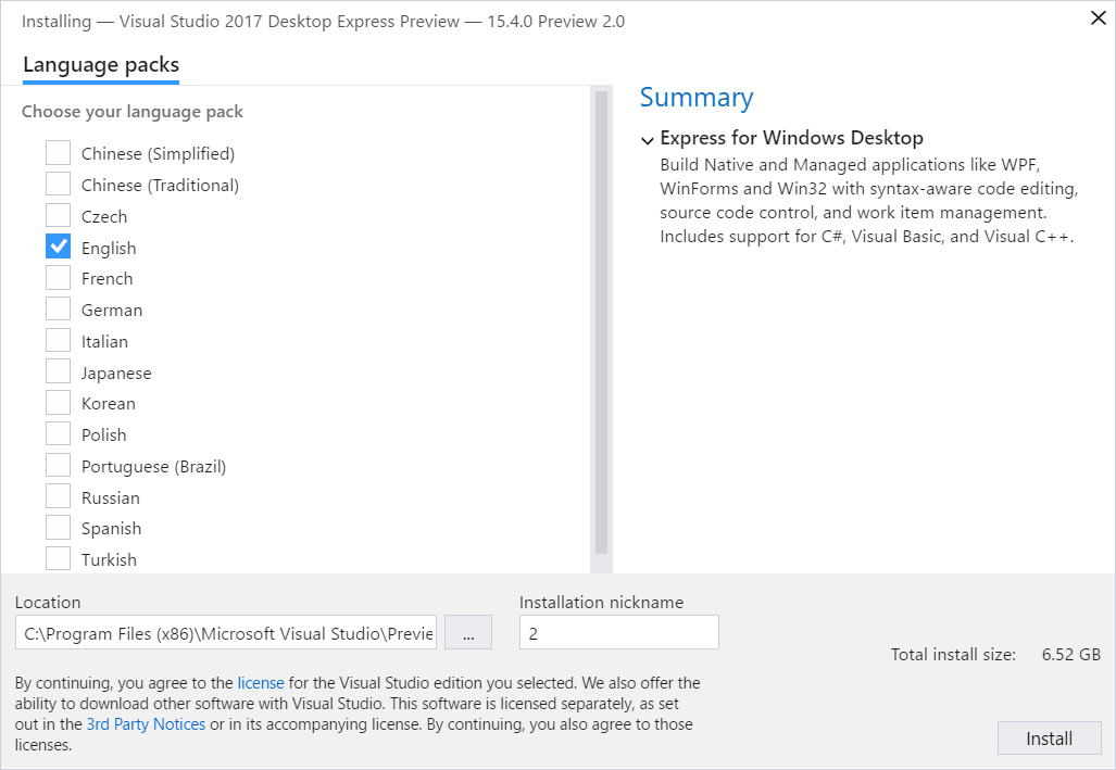 [2017-10-17: Final release of Visual Studio Express 2017 is out.]