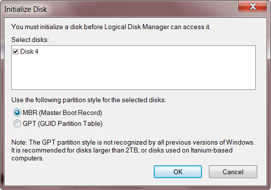 Rest of code is fairly straightforward. To call it just use DiskIO.InitializeDisk("\\.\PHYSICALDRIVE4") (substitute number for whichever drive you wish to initialize).