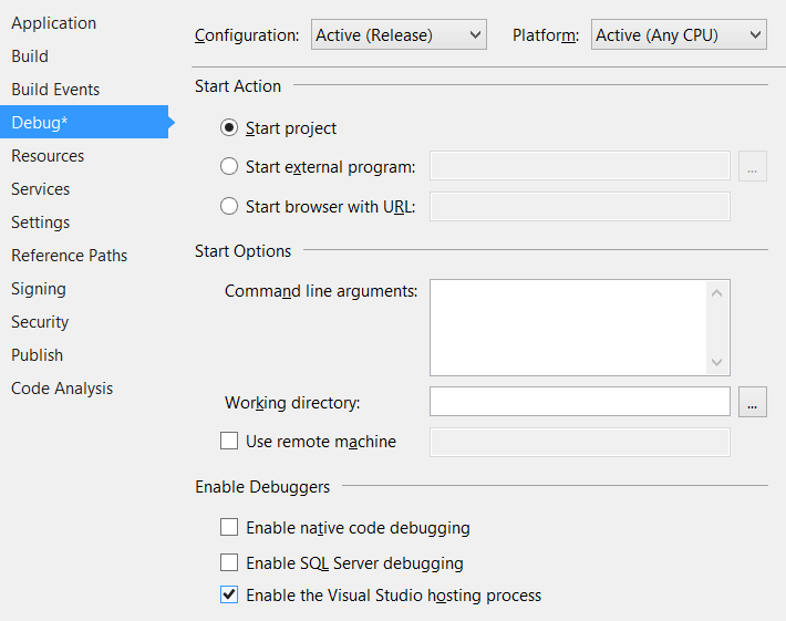 If you love immediate window, don’t uncheck Visual Studio hosting process debug option. Otherwise you will lose Immediate’s window functionality when you need it the most.