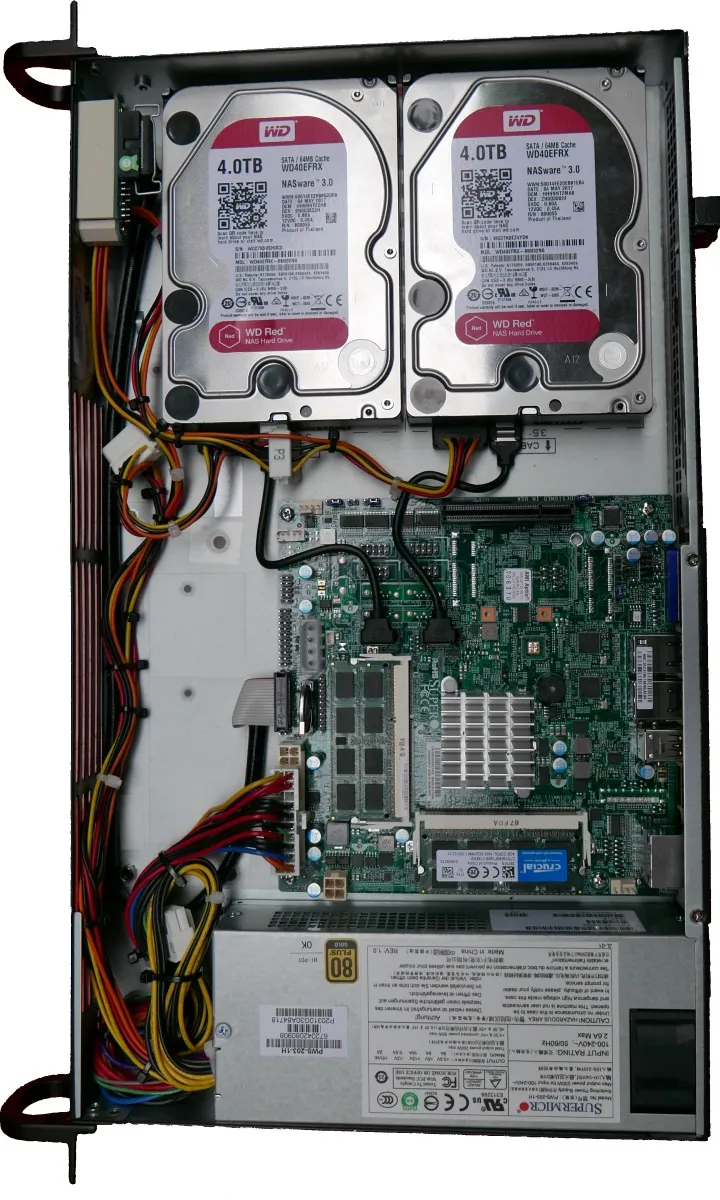 As point of interest, you might notice Supermicro offers SC504-203B and SC505-203B rack cases that have seemingly identical specs. It took me a while to figure out the only difference: 504 has all the connectors in the back and 505 has the motherboard connectors at the front. For my case, more common setup of connectors at the back was better, but your mileage might vary.