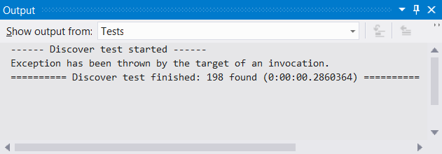 I was quite surprised when Visual Studio 2012 could not run any unit tests for one project of mine. Every time I would hit rebuild, same output would appear “Exception has been thrown by the target of an invocation.” and Test Explorer would stay empty.
