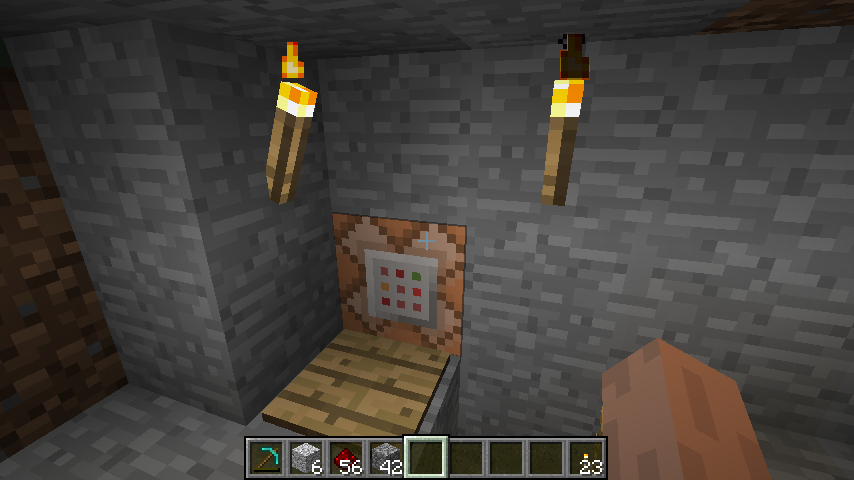 It didn’t took long before I was completely swamped with teleport request. Get me to sister, get me to my home, get me to my mine, get me to an island… Having to enter coordinates every time gets boring quickly. So I decided to figure way to make it simpler. Answer was in command blocks. Just add a pressure plate and you can make them do whatever you want. Including teleport.