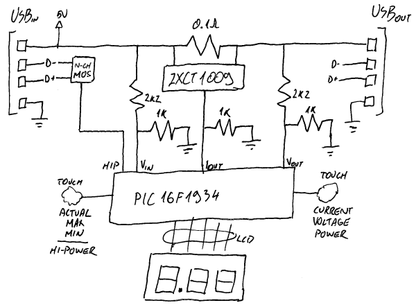 By default it shows current value but you can also recall minimum and maximum. Latest revision © also allows special high-power mode where it behaves as an USB charging port.
